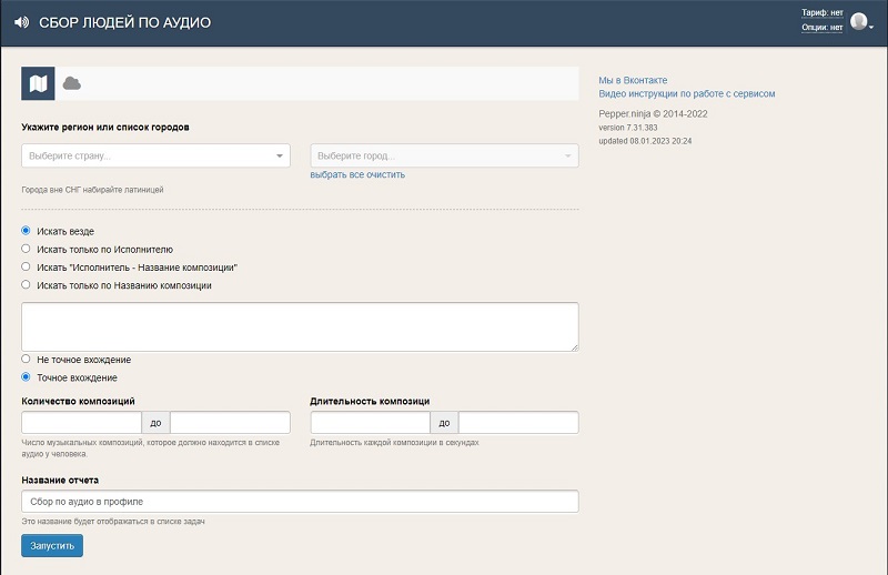 Сервис многозадачный, сбор базы ID в VK зависит от конкретного задания. Его инструменты регулярно обновляются, например, недавно появился парсер по музыкальным предпочтениям ВКонтакте. Подходит для поиска аудитории, предпочитающей определенного исполнителя или жанр.