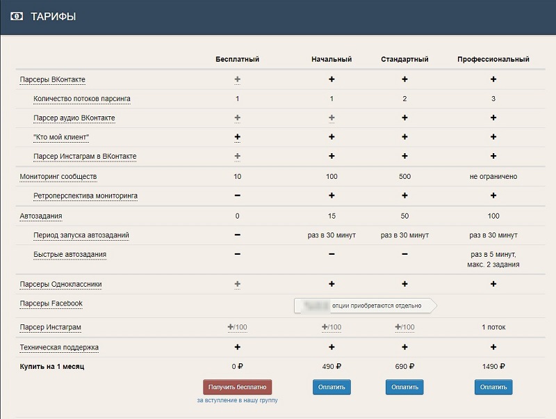 Для Facebook* опции нужно приобретать отдельно. Пакеты можно оформить на один, три, шесть месяцев, также на год.