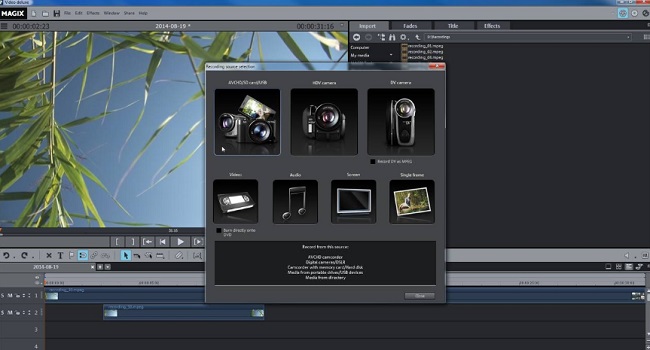 - Можно захватить видеофайл с экшен, веб или обычной видеокамеры.