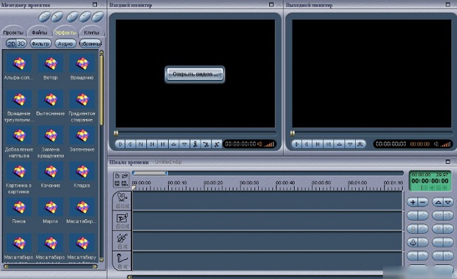 Воспользоваться широкой панелью инструментов. В зависимости от конечной цели можно осуществить подгонку кадра, увеличить или уменьшить фотоизображение. К услугам пользователей — более ста пятидесяти визуальных и звуковых спецэффектов.
