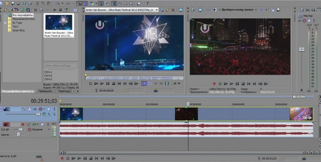 Данная программа является профессиональным видеоредактором. Ее широко используют на телевидении и при разработке веб-дизайна. Без нее не обходится создание короткометражек. Новичкам будет непросто освоиться с интерфейсом Sony Vegas — он сложен даже для искушенных пользователей. Но если вы проявите усидчивость и терпение, сможете воспользоваться следующими функциями:
