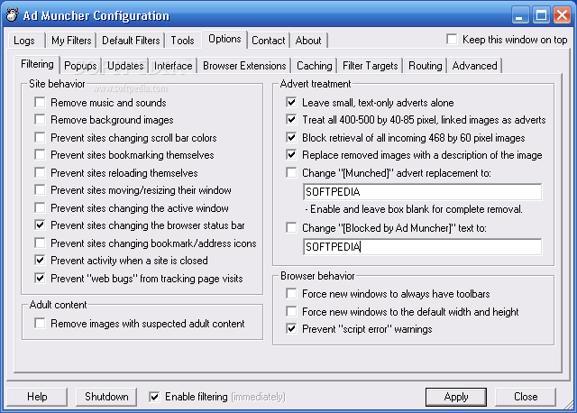 Ad Muncher еще одна программа, набирающая популярность. Она ставится только на Windows, что может ограничить использование для пользователей других ОС. В списке преимуществ – возможность блокирования рекламы и установки вредоносного программного обеспечения без вашего ведома. Работает утилита с большинством браузеров.